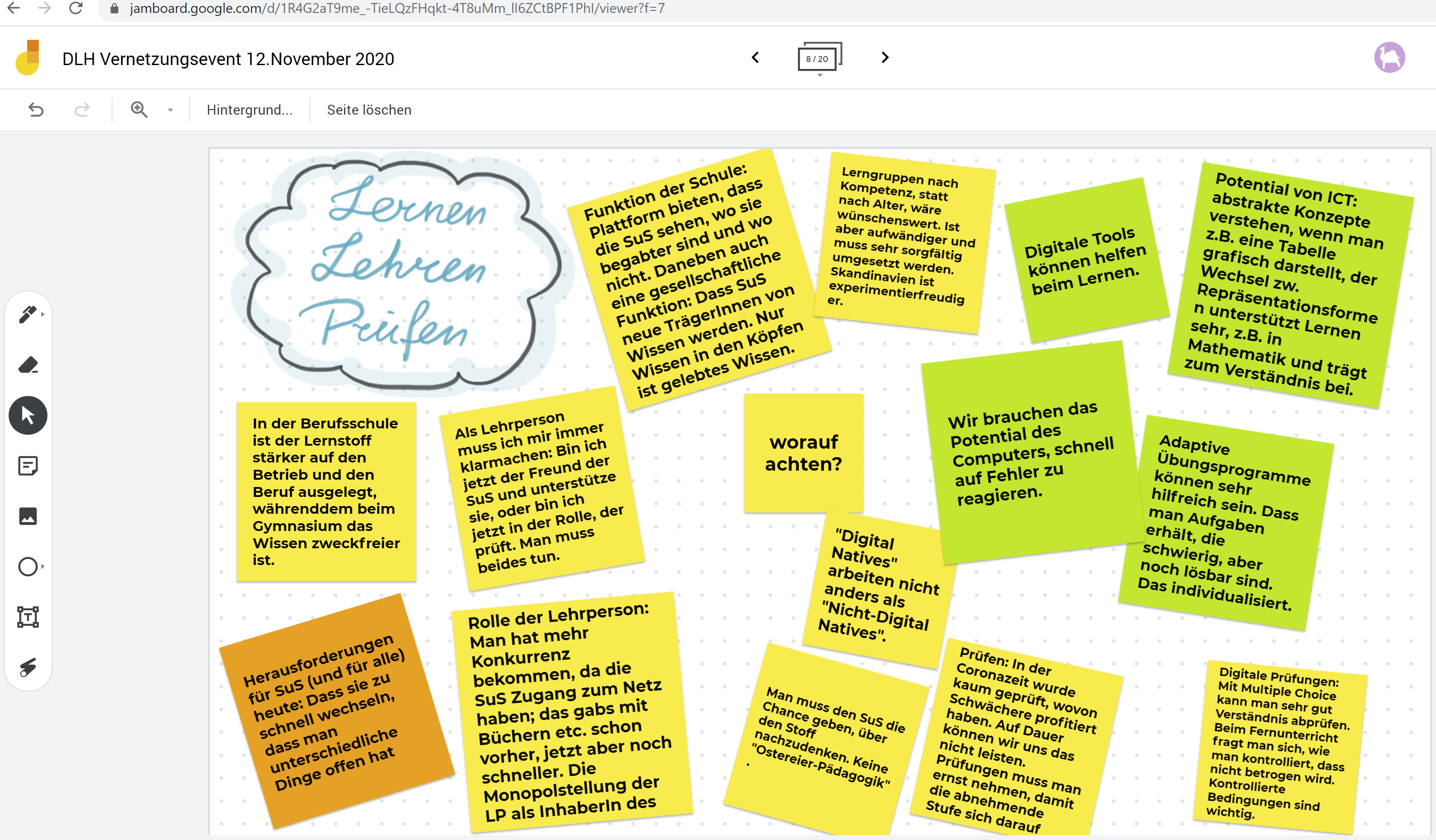 Die Essenzen der Sessions wurden auf einem für alle einsehbaren Online-Notizbrett festgehalten. Wer nicht dabei sein konnte oder sich das Festgehaltene erneut anschauen möchte, findet die Notizen hier.