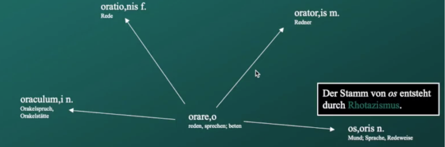 Vom lateinischen Wortschatz her werden dabei systematisch auch die modernen Sprachen miteinbezogen. Ein Schwerpunkt liegt auf der Kategorisierung der Wortbildungsmechanismen und Lautgesetze. Die Schülerinnen und Schüler erkennen dadurch die grundlegenden Gesetzmässigkeiten innerhalb des Wortschatzes verschiedener Sprachen – auch des Deutschen. Der natürliche neuronale Prozess der Verknüpfung von neuen mit bereits bekannten Wörtern wird so systematisch nachvollzogen und reflektiert: Der Wortschatzerwerb wandelt sich damit vom blossen Auswendiglernen zum erkennenden Durchdringen der Sprachwelt.