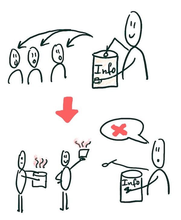 Die Früher war die Lehrperson tatsächlich die Hauptquelle der Information für die Schüler/innen. Wir haben ihnen die neuen Informationen Löffel um Löffel gefüttert, wie einem Baby.