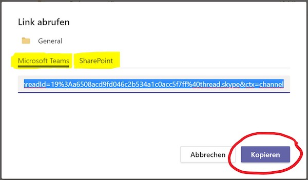 Der Link zu einer Datei in Teams oder auf OneDRIVE kann kopiert und dann in OneNote platziert werden: