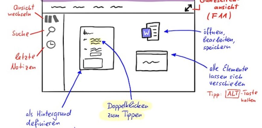 OneNote ist ein digitales Notizbuch, welches Ihre Notizen während der Bearbeitung automatisch speichert und synchronisiert. Ideal für den Gebrauch im Unterricht.