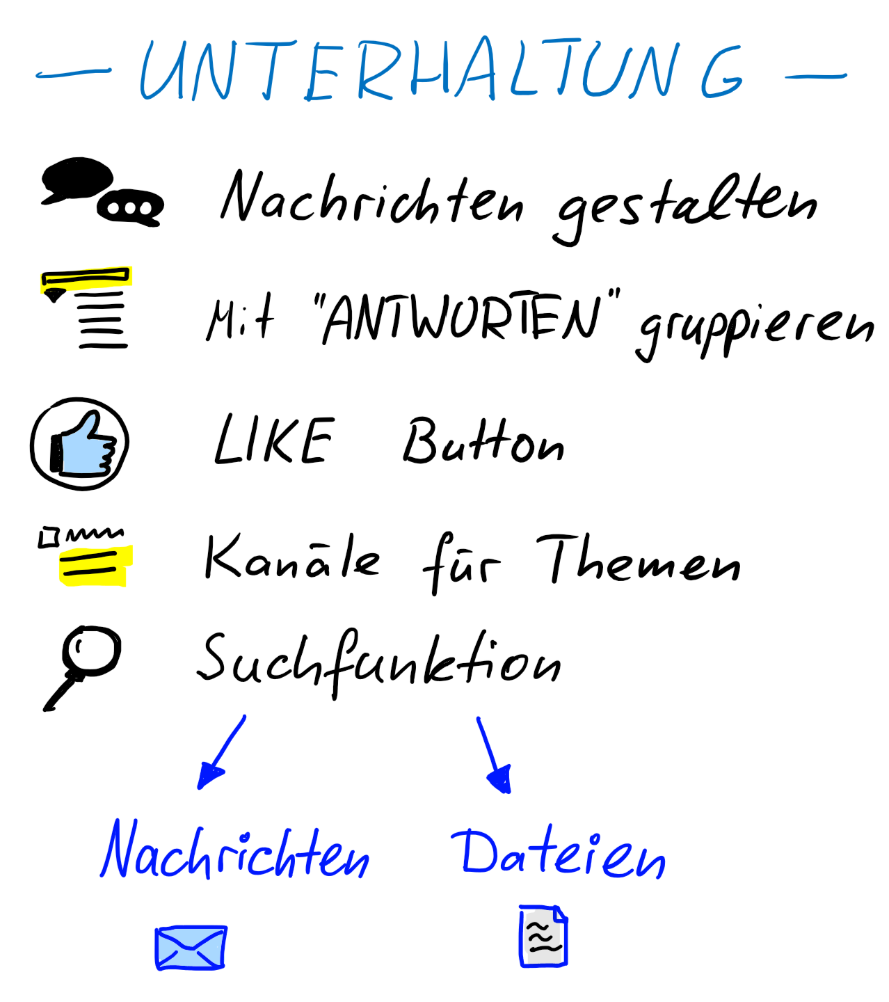 In jedem Kanal gibt ein einen dazugehörigen Bereich “Beiträge”. So lassen sich Unterhaltungen thematisch nach Thema in die verschiedenen Kanäle platzieren, was wiederum für mehr Ordnung sorgt. Dabei gibt es einige Hinweise: